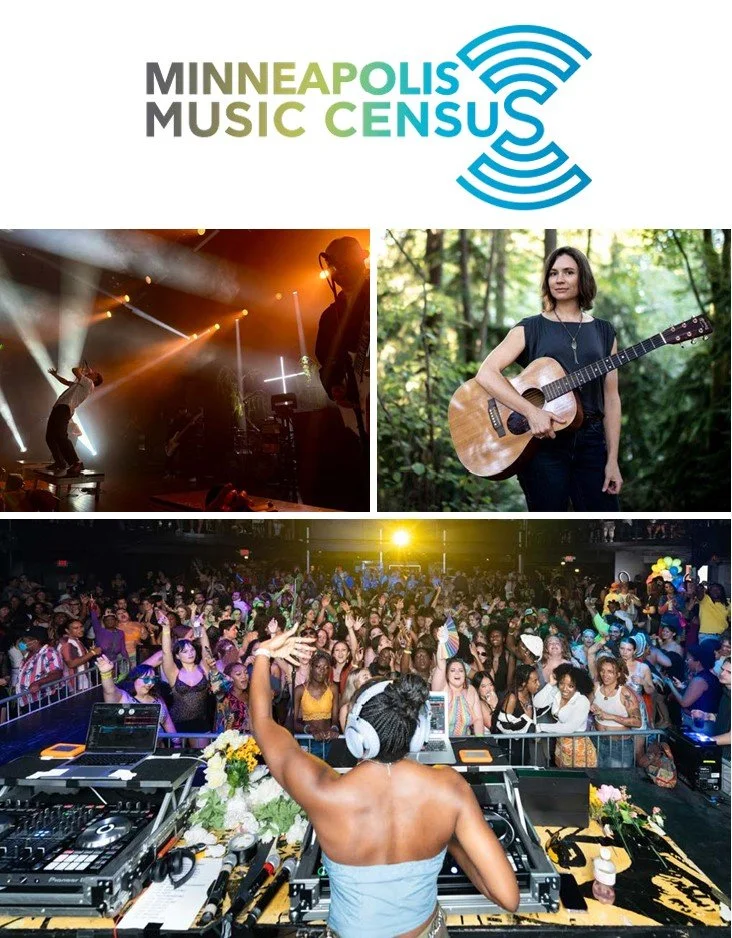 The Minneapolis Music Census was a community-led initiative to learn more about the needs of the music ecosystem in our city. It aimed to gather important information about the music industry in Minneapolis to help the city and the community make more informed, data-driven decisions. The music census launched on April 12, 2024 for three weeks. A special thanks to all who participated and for our partners and sponsors, shown below.