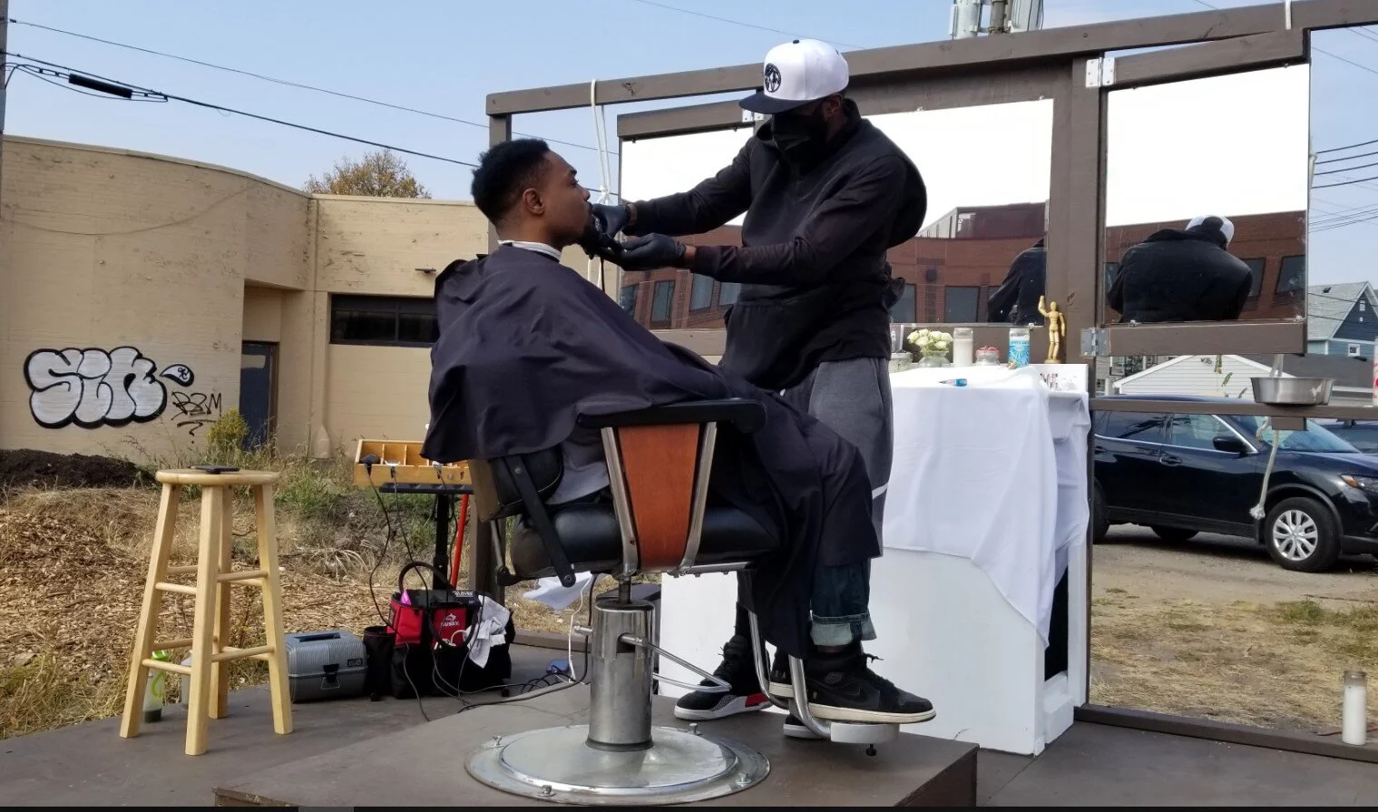 Nov 16 2020 | How a Minneapolis artist and architect created an outdoor barbershop and altar for his community to connect, process grief and heal together.
