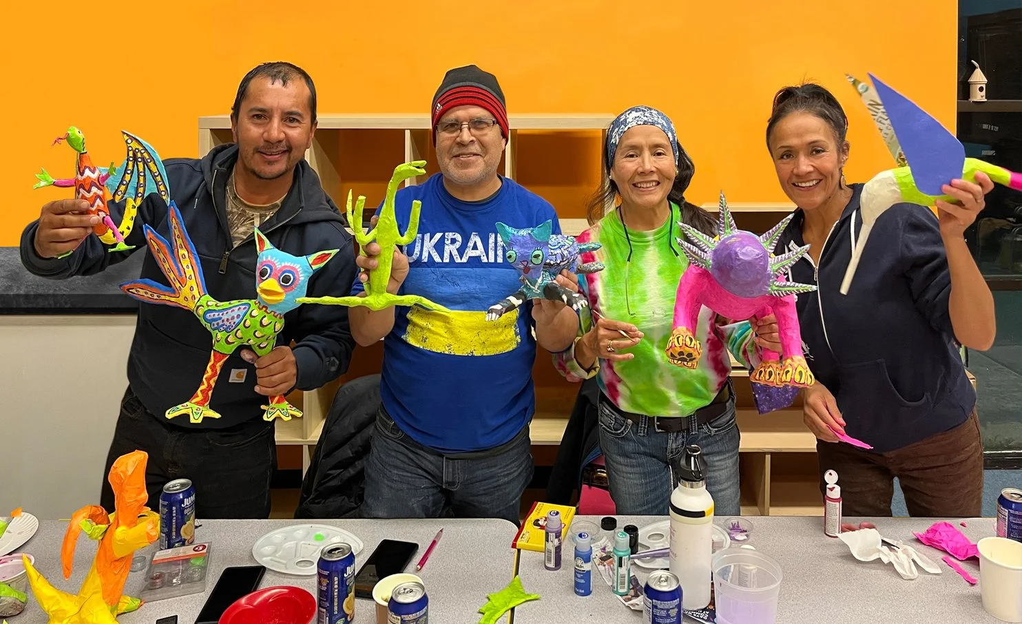 Community members participating in the workshops see themselves identified in their work. It’s a process of self-discovery – of their cultural identity along with a reservoir of untapped skill sets, creativity, and innovation. Aaron shared, “a lot of the people who participated in the workshops decided to form their own group so they can fabricate giant Alebrijes. This was great news for me and Gustavo to hear, because it wasn’t an outcome we were expecting.” Gustavo asserted that, “creative healing was evident when we saw diverse community members together in a welcoming and friendly environment. A space full of acceptance, a place where each person was valued, and an atmosphere where positive feedback celebrated each person’s individual creations.”